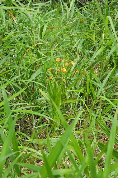 | 日当たりのいい草地、湿地などに生える多年草で、高さは30〜70センチ。カキランの品種で、唇弁が側弁花(ロベリア化)したもの。花以外は母種と同じで、葉は互生し、狭卵形。花期は5〜6月。南九州〜奄美大島などの島嶼に分布する。 〜徒然想〜 ラン科は、ユリ科から分科したと聞いたことがあります。 イソマカキランは、ラン科の唇弁が花弁化して6弁になった花(ロベリア化)を持ち、一見ユリ科のように見えます。それで先祖返りした花(ラン科→ユリ科)といわれる所以があります。 イソマは、鹿児島県磯間に由来するようですが、そもそも自生のイソマカキランの情報が少なく、定かではありません。稀少な植物です。 小道にはユウレイランが見られ、たどり着いた日当たりのいい草地には、この花が埋もれるように咲いていました。 -同じ科の植物- |