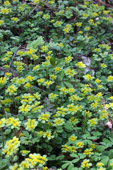 | 山地の湿った地、沢沿いなどに生える多年草で、高さは5〜15センチ。全体に毛が多い。葉は楕円形〜卵円形で大きく、縁には9〜17個の鋸歯がある。 花はコガネネコノメソウと同様で、花弁はなく、鮮黄色の萼片がある。雄蕊は8個で直立し、萼裂片よりも短い。葯は鮮黄色。花期は4〜5月。本州関東以西、四国、九州に分布する。 〜徒然想〜 全体が大きく、茎にびっしりと白毛が生えるものはオオコガネネコノメソウと呼ばれています。外観上は明らかにコガネネコノメソウと区別できますが、両者を区別しないとする学者もいるようです。 毛の有無や多少で別物扱いにすることはよくあることですが(私自身はあまり賛同しません。)、気になるのは区別したりしなかったりすることです。学者先生の考えていることは、良く分かりません。 疑問が一つ。ある場所のオオコガネネコノメソウは、花床でしょうか、雄しべの基部が赤く染まっている花が見られました。黄色い葯が浮いているようで綺麗だったのですが、これは何なのだろうか。未だに不明です。 −同じ科の植物− |