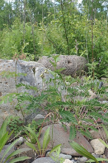 | 日当たりのよい河原、砂礫地などに生える多年草で、高さは20〜50センチ。茎は横に這い、先は斜上する。葉は奇数羽状複葉で、小葉は6〜11対。 花は緑色を帯びた白色で、萼筒には黒毛が圧着する。莢(さや)は黒熟し、白毛と黒毛が圧着する。花期は6〜7月。北海道に分布する。 〜徒然想〜 日光千手ヶ浜に隔離分布していましたが、こちらは絶滅したようです。 北海道においても、河原などの増水すれば流されるような厳しい環境に生えるようなので、危機的状態です。 事実、本画像も石がごろごろした河原で撮影しましたが、およそ2ヶ月後に同所を台風が襲いました。川の氾濫など、かつてないほどの被害が出たとあり、流されてしまったのではないかと、懸念しています。 萼筒に黒い剛毛が生えるのが特徴で、前年に撮影したモメンヅルとは、だいぶ様子が違います。花期は6〜7月とされていますが、2016年は6月初旬では残り花の撮影になってしまいました。 −同じ科の植物− |
