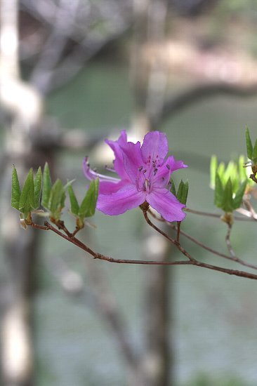 | 低山・山地、丘陵地などの明るい地に生える落葉低木で、高さは2〜3メートル。葉は枝先に3輪生し、広卵形又は菱状卵形、縁は波状となり、先は尖る。 通常、葉の展開より先に花が咲く。花は紅紫色で、直径3センチほど。雄しべは10本。花期は3〜4月。本州静岡県以西、四国、九州に分布する。 〜徒然想〜 ミツバツツジの仲間は、雄しべの本数などで分類できるものもあるが、種類が多く難しい。トウゴクミツバツツジやユキグニミツバツツジなど、生える地域に特徴があることが多いので予測をつけ、詳細を確認するようにしています。 コバノミツバツツジは,静岡県以西の暖かい地方に多く、特に愛知県のこの地のミツバツツジの多くは本種とされています。 先にこの地を訪れたのは前年5月末でクロミノニシゴリやネジキの白い花が賑やかでしたが、再訪した4月は道の両側に紅紫色のこの花が立ち並び、すっかり春の様相です。 −同じ科の植物− |