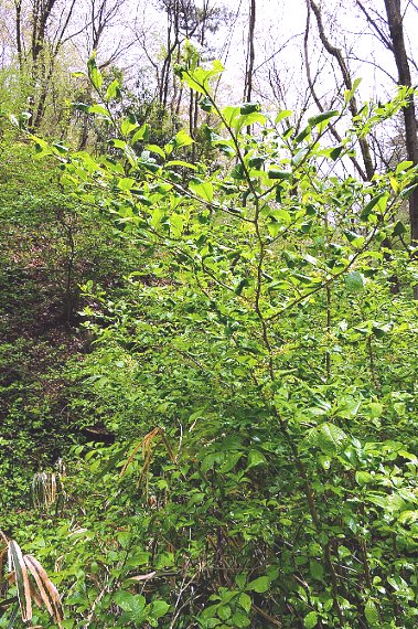 山地のやや湿った沢沿い、林縁などに生える落葉低木で、高さは1〜5メートルほどになる。葉は左右交互に2枚ずつ付き、コクサギ型葉序と呼ばれる。葉身は倒卵形又は長楕円形で、全縁又は低い鋸歯がある。 雌雄異株で、葉腋に黄緑色の花を付ける。雄花は総状花序に10個ほど付き、雌花は1個付く。花期は4〜5月。本州、四国、九州に分布する。 〜徒然想〜 植物全体に臭気があり、クマツヅラ科のクサギより小型なので「小臭木」の名が付いたされています。 近くを通ると臭気を感じるということですが、鈍感な私には気付きませんでした。葉をちぎると強く臭気を感じるということですので、次の機会がありましたら試してみましょう。 花は雄花は多数の小花を付ける総状花序となりますが、雌花は葉腋に4弁の花を付けるだけです。ですから、同じ植物とは思えず、ずいぶん長い間分かりませんでした。 −同じ科の植物− |