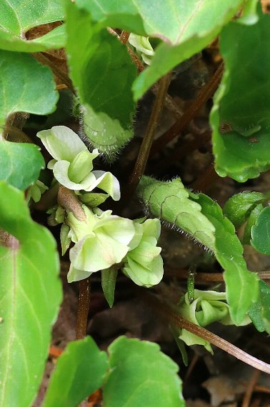 | 花が緑色を帯びるヒナスミレの緑花品。ブナ帯の林縁、林下などに生える多年草で、高さは3〜8センチ。花期は4〜5月。群馬県に観察記録がある。 〜徒然想〜 だいぶ以前にミドリタチツボスミレを見て、何か釈然としない想いを持ち続けていました。なぜ花が緑色を帯びるのだろかということです。先祖返りという説明もよく分かりません。 ミドリニリンソウやミドリハクサンイチゲは、花=蕚片が緑になるので理解できます。 でも、花弁がなぜ緑色になるのだろうか。土質なのか、農薬などで環境が変わったためなのだろうか? でも、すぐ傍らにはオクタマスミレのきれいな花が数株見られるので、かならずしも特殊な土質でもなさそうです。分かりません。 花は、いずれも平開せず閉じ気味であるので、何らかの負荷がかかっているのではないかと思うのですが・・・。 −同じ科の植物− |