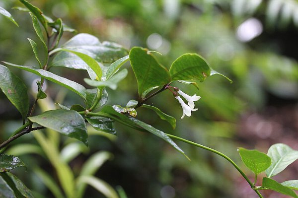 | 山地のやや湿った林内などに生える常緑小木で、高さは1〜1.5メートル。枝をよく分岐させ、棘は短くて少ない。葉は対生し、長楕円形、縁はやや全縁、質が厚く、短い葉柄があり、先は鋭く尖る。 花は葉腋から出る短い枝に1〜3花付け、白色で、筒状の4弁。果実は扁球形で、赤色に熟する。棘は短くて少ない。花期は2〜5月。奄美大島〜南西諸島に分布する。 〜徒然想〜 リュウキュウカイロランが点々と見られる登山道で、不意に現れました。2花のみ、白く輝くように咲いていました。 現場では???でしたが、調べるとリュウキュウアリドオシでよさそうです。アリドオシに似た植物ですが、葉腋から出る棘が極端に短くて少ない違いがあります。葉もやや長い楕円形になります。 似た植物を新たにみつけると、その特徴を明確に撮影していなかったことに後悔することがあります。アリドオシも同様で、長い棘が写し込まれている画像がアップされていませんでした。幸いにも棘の画像が有ったのでアップ済みのアリドオシに追加しました。 画像が有って良かった! -同じ科の植物- |