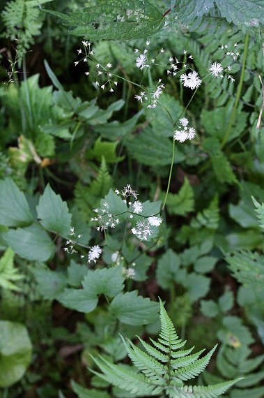 | 山地の林下や法面などに生える多年草で、高さは30〜70センチ。葉は2〜3回3出葉で、小葉は長さより幅が広く、裏は灰白色。 花は複散房状になり、白色で直径1〜2センチほど。花弁はなく、雄しべが多数あり、花糸は先がこん棒状に膨れる。花期は7〜10月。関東地方南部〜九州に分布する。 〜徒然想〜 シキンカラマツを求めて八ヶ岳の麓を歩き回ったことがあります。結局、八ヶ岳の麓の別荘地内でみつけたのですが、この植物の詳細を調べるにつれ、似た名のシギンカラマツがあることを知りました。今度は、シギンを求める花旅の開始です(頭の中で気にかけていただけですが。)。 それから、3年ほども経ったでしょうか、広島県に遠征する機会があり、思いがけなくこの花に出逢い、長年の夢が叶ったようにうれしくなりました。 シキンカラマツは1メートルを優に超える高さになりますが、出逢ったシギンカラマツはせいぜい50センチほど。ミヤマカラマツに似ていますが、葉の形状が違います。 −同じ科の植物− |