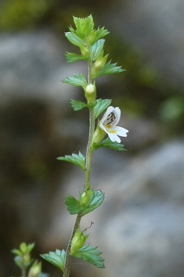 | 石灰岩の砂礫地に生える半寄生の1年草で、高さは10〜25センチ。タチコゴメグサの変種で、葉や苞葉の幅が細く、卵形又は狭卵形。鋸歯は2〜3対あり、先端の鋸歯はあまり尖らない。 花は白色。花期は8〜9月。南アルプスの石灰岩地に特産する。 〜徒然想〜 タチコゴメグサの変種ということで、納得できます。見た目はタチコゴメグサですが、石灰岩地の植物の例に漏れず、全体に小さく細く、弱々しい感じです。花も小さめで、長さ7ミリほどでしょうか。 蛇紋岩地(至仏山、アポイ岳など)や石灰岩地(伊吹山など)は土壌の特徴から特有の形に変化したものがあり面白い。 至仏山にはホソバコゴメグサ、伊吹山にはイブキコゴメグサが産する。 −同じ科の植物− |