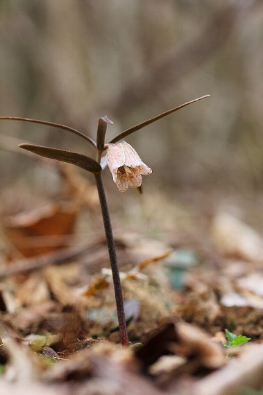 山地の林下などに生える多年草で、高さは10センチほど。葉は披針形〜広線形で、茎の上部に対生する2個とその上部に輪生する3個が付く。 花は茎頂に1個下向きに付き、白色で筒状鐘形、長さ1.5センチほど。花被片には網目状の斑紋があり、外面肩部には突起がある。葯は紫色。花期は4月。四国に分布する。 〜徒然想〜 コバイモを訪ねる旅も、いよいよ最後のトクシマコバイモになりました。 みつからなかった登山口をようやくみつけ、確信をもって道を進みます。コバイモが咲く雰囲気になってきた頃、いきなり1つの花が目に入りました。 あったー! これだー! とうとうコバイモ8種目の達成です。 達成感で力が抜け、思わず地に座り込みます。目の前には、小さな花が風に揺れています。 周りを探すと、点々とこの花がみつかります。登山道にはみ出たものも多く、踏まれないように小枝が刺してあります。 花の形はアワコバイモとトサコバイモの中間といったところでしょうか。やや花の肩に突起があり、全体的には丸みがあることから優しげです。撮影しながら、次第にこの花が好きになっていく自分を感じました。 これで日本のコバイモ全8種類を撮り終え、満願成就です。 でも、九州宮崎県であやしいコバイモがみつかっているといるとの情報があります(未確認)。 −同じ科の植物− <日本のコバイモ8種類はこちら> |