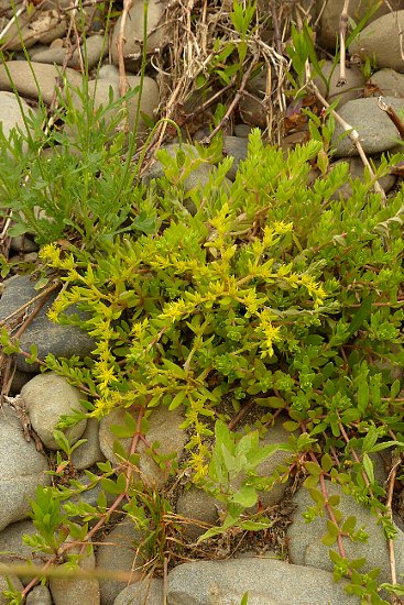 道端や土手などで、黄色いマンネングサの花の群生がよく見られます。そのように群生するのは本種かメキシコマンネングサで、いずれも帰化種です。