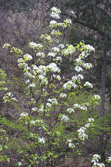 ヤマナシ 山地や人家に近い山中などに生える落葉高木で、高さは10〜15メートル。葉は互生し、卵形又は狭卵形、縁には芒状の鋭い鋸歯がある。短枝の先に散形花序となり、直径3センチほどの白色の花を付ける。 花弁は5枚で、雄しべは約20個、花柱は5個。花期は4〜5月。本州〜九州に分布する。 ナシは、ヤマナシから改良されたと考えられています。 〜徒然想〜 登山口には山の案内板があり、その周辺に数本生えていました。案内人によればヤマナシですとのことでした。そういえば・・・と、梨園で花を撮ったことを思い出し、画像を比較してみました。 比較して納得しました。よく似ています。ヤマナシは2〜3センチほどの実を付けるようです。 梨は多くの花を付けていました。花を間引きして大きな実にするのでしょう。 ヤマナシも花を間引きすれば大きな実を付けるのだろうか。定かではありません。 −同じ科の植物− |