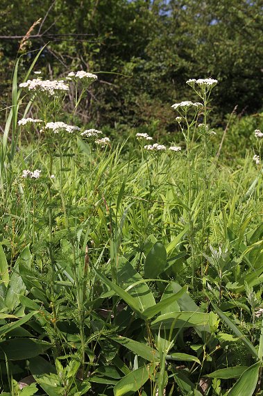 ノコギリソウの変種で、日当たりのよい山地の草原などに生える多年草で、高さは50〜100センチ。葉は対生し柄がなく、長楕円形で、のこぎりの歯状に裂け、裂片には鋭い鋸歯がある。 頭花の数がやや少なく、白色の舌状花の長さ3ミリ以下と小さいのが特徴である。花期は7〜8月。本州中部以北こ分布する。 〜徒然想〜 この地にあるものはヤマノコギリソウとされていますが、ノコギリソウとの区別は難しいと感じました。 頭花の一つ一つはやや小さいですが、数はさほど少ないとも思えませんでした。ヤマノコギリソウの名とその特徴を知らなければ、ノコギリソウとして見送ってしまうでしょう。 花はちょうど咲き揃ったところで、純白がきれいです。傍らに咲くエゾカワラナデシコのピンクと競い合うように咲いていました。 −同じ科の植物−