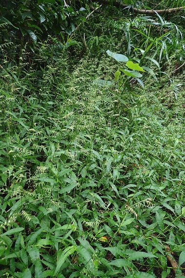 山中に限らずちょっとした道端に普通に見られ、画像のように群生します。チヂミザサと同様に、そんな群生に踏み入るようなことがあれば、ズボンはひっつき虫で大変なことになります。