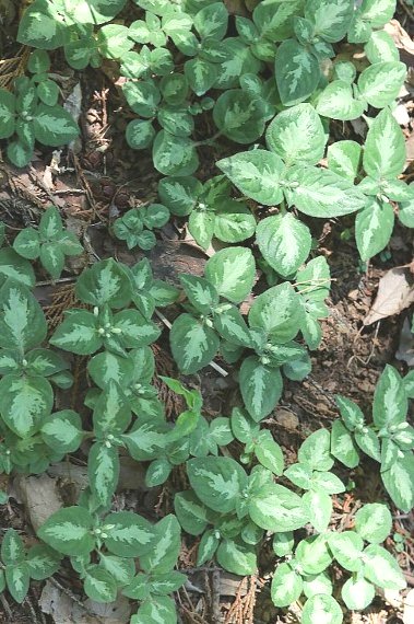 イナモリソウの葉に白い斑が入るものはフイリイナモリソウと呼ばれます。