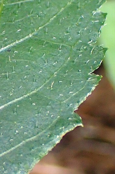 | 葉表 鋸歯は左側は10個、右側は8個でした 短毛が疎らにありました | ||