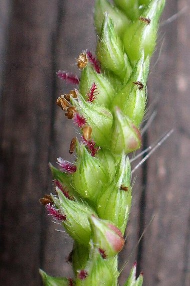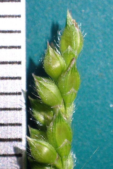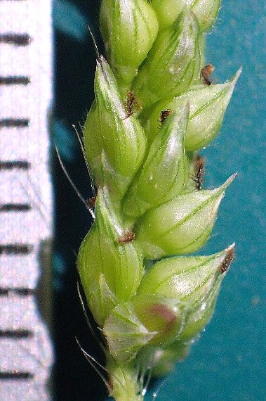 | 同定の決め手の一つで、小穂の長さは3ミリほどでした イヌビエは4ミリほどあります | ||