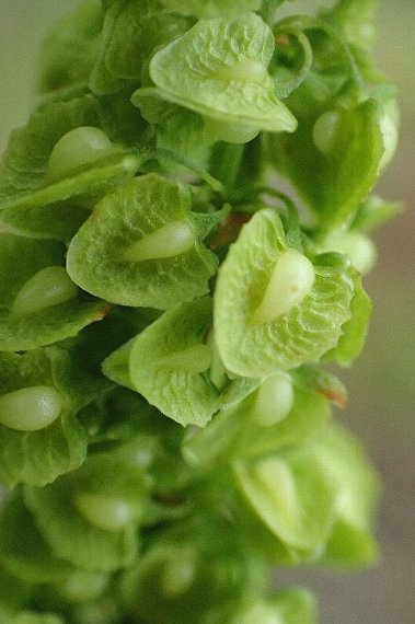 原野、道端、河川敷などに生える多年草で、高さは50〜100センチ。茎は直立し、緑色で、上部は分枝する。葉は長楕円状披針形で、長い柄があり、基部はやや心形から円形で、縁は波打つ。 花は茎の先に輪生状について円錐花序となり、花被は淡緑色。花後内花被片は翼状になり、縁には低い鋸歯がある。中央部は長卵形のこぶ状突起となりそう果を包む。花期は6〜8月。日本全土に分布する。 〜徒然想〜 ギシギシの仲間は種類が多く、更によく交雑するので、見分けが難しいです。中間的なものも多く、投げ出したくなります。 今回は分かる範囲でこの仲間に挑戦し、仕分けてみました。 ギシギシは在来種で、花後、翼状に膨らむ内花被片が丸くやや先が尖り、縁に低い鋸歯があるのが特徴です。 よく似たナガバノギシギシは内花被片の先は丸く、鋸歯がなく全縁です。葉の基部の違いもあります。 ある図鑑によると、花や実がぎゅうぎゅうに密集して付くのが特徴とあります。これに気付くと、ギシギシを見つけ出すのは容易かもしれません。 −同じ科の植物− |