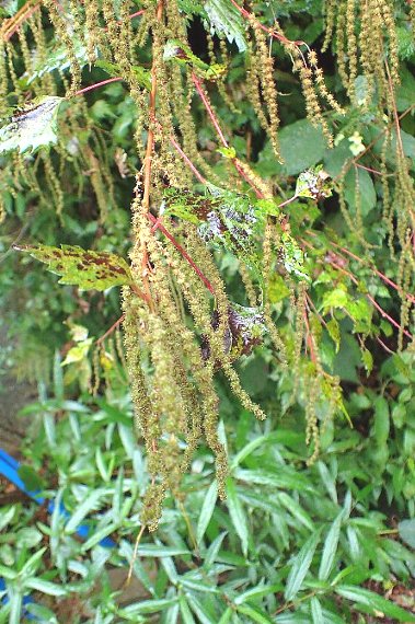 雌雄同株で、茎の上部に雄花序、下部に雌花穂を穂状に付ける。花期は8〜10月。本州〜九州に分布する。
