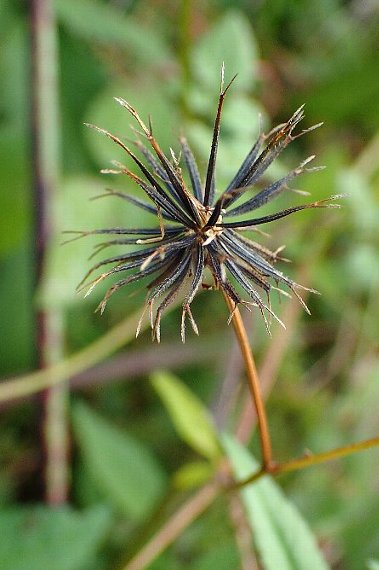 熱帯アメリカ原産の帰化植物。荒地、川原、道端などにふつうに生える1年草で、高さは50〜110センチ。茎は直立し、短毛が多い。葉は下部は対生、上部は互生し、1回羽状に3〜5裂し、両面にまばらに毛があり、縁には鈍鋸歯があり、頂小葉の先端は細く尖る。 頭花は枝先に付き、幅の広い筒状、舌状花はないか時に黄色の短い舌状花があり、筒状花は両性で黄色。総苞片はへら形、外片は7〜8個。痩果は長さ4〜16ミリで、やや扁平で4稜形、黒色、先端に2〜4個(まれに6個)の芒(刺)がある。花期は9〜11月。 〜徒然想〜 本種の仲間にはコシロノセンダングサ、アイノコセンダングサ、オオバナノセンダングサなどがあり、見分けが難しい仲間です。「帰化&外来植物950種」(森昭彦著 秀和システム社)やネット情報を参考に、少しまとめてみました。 コセンダングサ:頭花は前記のとおり。 コシロノセンダングサ:頭花は5〜7個の小さな白い花弁(舌状花)と黄色の筒状花がある。コセンダングサの変種の位置づけとなっている。 アイノコセンダングサ:頭花の外側に白い筒状の花がある。コセンダングサとコシロノセンダングサの雑種とされている。 オオバナノセンダングサ:頭花には白色の大きな舌状花が付き、直径が3センチほどになる。 しかしながら、これらの分類は難しく、コセンダングサ、アイノコセンダングサ、コシロノセンダングサの3つを区別しない見解があります。 また、コシロノセンダングサとオオバナノセンダングサを区別せず、両者を含めてシロノセンダングサ(シロバナノセンダングサ)という見解があります。 さらに、これら全てをコセンダングサに含める見解があります。 観察した多摩川河川敷では、コセンダングサ、アイノコセンダングサ、コシロノセンダングサは混在し、それぞれの中間タイプも多く見られ、やはり見分けが難しいと感じました。 −同じ科の植物− |