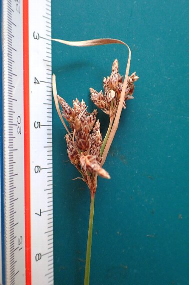 沿海地の湿地などに生える多年草で、高さは10〜70センチ。葉は線形。小穂は枝先に複数が密集して付き、花序枝は大型の個体では発達するが、小型の個体では短く頭状に密集する。