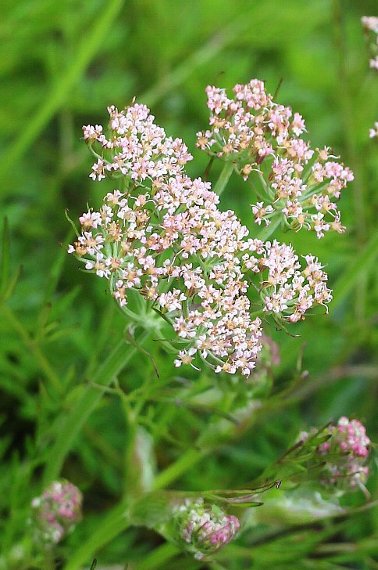 山地の林縁、草地などに生える多年草で、高さは50センチほどになる。茎は細く、中部で枝分かれする。葉柄基部に膜質の鞘がある。葉は2〜3回羽状複葉で、小葉は細かく切れ込み、裂片は披針形〜線形。 茎の先端に小さな複散形花序を付ける。花は白色の5弁花で、線形の総苞片と小総苞片がある。果実は倒卵円形で、分果の条は翼状になる。 花期は7〜8月。関東地方、中部地方に分布する。 〜徒然想〜 同定にずいぶんと迷った植物です。 @小葉が人参に似て細かく切れ込み、終裂片は線形になり、頂裂片が側裂片より長くなること、 A総苞片、小総苞片とも線形であること、 B花弁が内側に曲がる傾向があること、 C撮影地が高山でも低地でもないこと から本種としました。 果実を鮮明に撮っていれば、もう少し同定に自信が持てるようになっていたでしょう。 2015年は、オニクなどを撮影し、おまけにと下り道でオクサワトリカブトを撮影した時に足元に咲いていたのをみつけたものです。背丈は20センチほどでした。 −同じ科の植物− |
