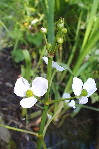 北米原産の帰化植物。湖沼、ため池、水路などに逸出している抽水性の多年草で、高さは20〜60センチ。葉は根生し、沈水葉は線形で鈍頭。水上葉(抽水葉)は長い葉柄があり長円形、全縁、質はやや厚い。