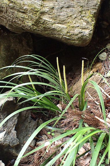 渓流や小河川の縁などに生える多年草で、高さは30〜50センチ。葉は線形。