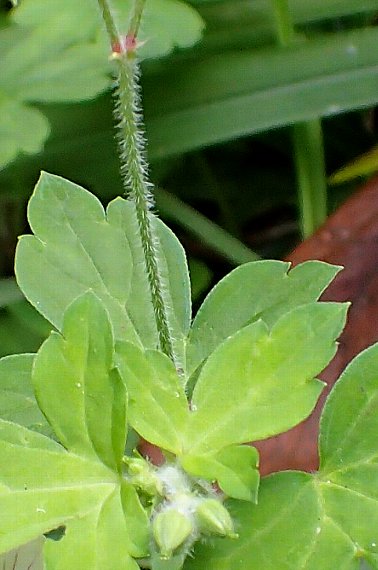 タカオフウロとの違いで一番惑わされたのはゲンノショウコです。しかし精査すると、ゲンノショウコには花茎、萼に腺毛が圧倒的に多く見られ、他と見間違えることはないと思いました。