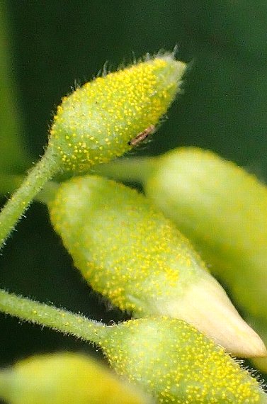 | 2025.9.14 神奈川県川崎市 萼裂片は萼筒より短く、先端は緩い三角状です 萼には黄色い腺点と短毛があります 腺点は突起状に盛り上がっていました |