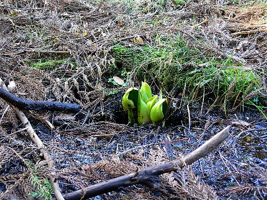 記念すべき花となった。 日頃メール等で大変お世話になっていながらお会いする機会がなかったMさんとの出逢いをもたらしてくれた。初見の花に出逢えるのはもちろんうれしいが、人との出逢いはもっとうれしい。誘って頂いたKさんに感謝する。 そういえば、Kさんとの出逢いもMさんの仲介でした。 クロヤツシロランの撮影地を互いにMさんに教えていただいて、偶然かち合う出逢いとなった。出会う数ヶ月前にリンクをお願いしたKさんと名乗りあったあの感動は忘れない。 仏炎苞が緑色のザゼンソウをアオザゼンソウと呼ぶ。成長しても赤褐色に色付かない。高さは10センチほど。 根茎が沢水に洗われて露出していた。 −同じ科の植物− |