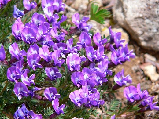 北海道高山帯の草地や砂礫地に生える小型の半低木で、茎、葉、萼筒の絹毛が長く多く、全体が白く見えるのが特徴。 〜徒然想〜 イワウメが大雪の大地を絨毯状に埋め、雪の残るなだらかな山と青い空に続きます。 絨毯の合間には点々と色鮮やかな青紫のエゾオヤマノエンドウがあります。さすがに大雪、この風景を見ただけでも、ここに来た価値があります。 ときに深い青紫色、ときにうす紫色、少しずつ色を変えるのは、オヤマノエンドウと同じです。葉や花序などに絹毛があるのが特徴とか。確かに葉は白く見えます。 白花を探したのですが、見つかりませんでした。 −同じ科の植物− |