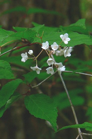 | 山地の林縁などに生える落葉低木で、高さは2メートルほどになる。葉は対生し、卵円形で先は尖り、粗い鋸歯がある。 枝先から散房花序を出し、5〜10個の白色5弁花を付ける。花期は5〜6月。 果実は赤く熟し、垂れ下がる。 〜徒然想〜 前年に富士山で撮ったと思っていたものが、アップにあたって自信がなくなり、ペンデングなっていたものです。 今度は間違いないでしょう。心強い師匠もいますから。 小ぶりの純白の花がきれいです。山道を登るにつれて、ポツリポツリと現れます。現れるたびにふと足を止め、白に魅入ります。 今日の目的はクモイコザクラですが、出逢いの前に満足な想いです。 −同じ科の植物− |