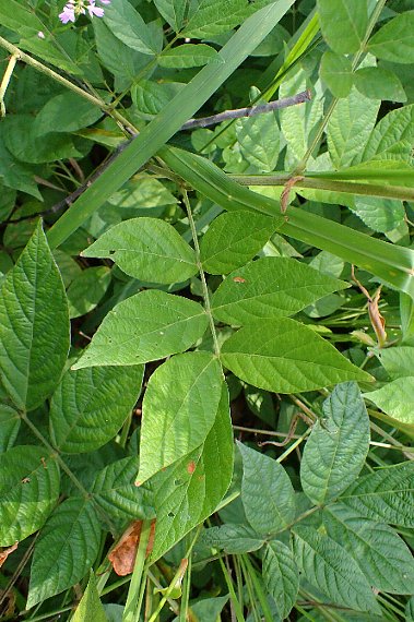 | 山野の林内に生える多年草で、高さ50〜150センチになる。全体にまばらに毛が生え、葉は互生する。2〜3対の小葉をもつ奇数羽状複葉。小葉は卵形〜長楕円形で先は尖り全縁。 茎の先端、葉腋から花序を出し、淡紅色の小さな蝶形花を数多くつける。花期は8〜9月。 〜徒然想〜 後ろから騒がしい若者の集団が登ってきます。7、8人で、およそ山登りにはそぐわない、街の遊び着のままの姿です。 私の撮影する姿に関心を示すことなく、追い越して行きました。 静けさが戻り、ふっと、ため息をつきます。 しかし、考えてみると< 彼らも立派なものです。まがりなりにも高尾山は山、それなりに登るには努力がいります。なぜ山登りを遊び場に選んだのか、感心もしました。 静けさが戻った道端には、ピンクのフジカンゾウが咲い ていました。 −同じ科の植物− |