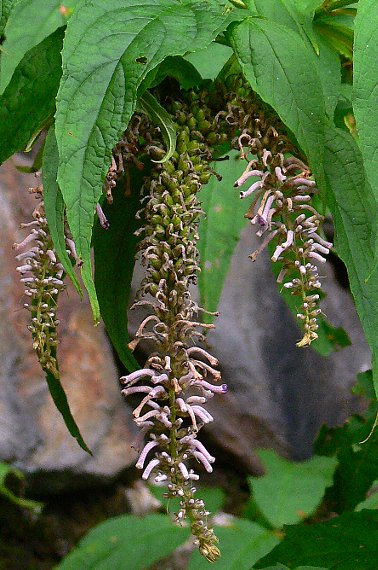 | 山地に生える落葉低木で、高さ1.5メートルほどになる。枝に翼状の4稜がある。葉は対生で、披針形〜卵状披針形。長さ20センチほどにもなり大きく目立つ。 枝先に垂れ下がった円錐花序を出し、赤紫色の花を多数つける。花期は7〜9月。東北〜近畿地方の主に太平洋側に分布する。 〜徒然想〜 当を得た美しい名前です。しかし、私との最初の出逢いは奥多摩だったでしょうか。暗いことやほぼ終わりに近かったこともあり、だらしなく垂れ下がり、あまり美しいとは思えませんでした。 その後の出逢いも・・・・・・やはり・・・美しくありません。 いい匂いがするといわれていますが、嗅いだことはありません。 有毒で、嘔吐、腹痛、呼吸困難、四肢の麻痺などの中毒症状を起こします。 いい画像がなく、元の画像をトリミング等で差し替えました。 −同じ科の植物− |