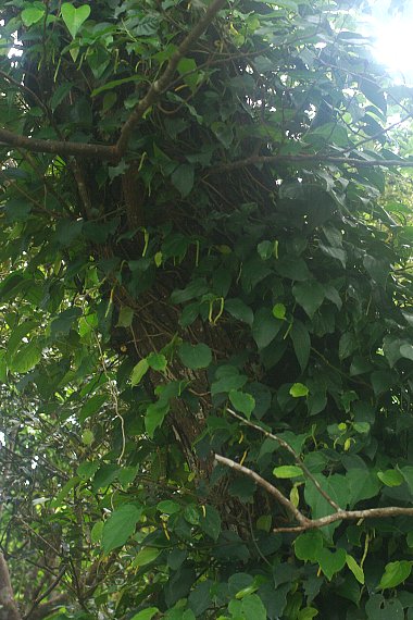 海岸近くの林内に生える常緑のツル性植物で、節から気根を出して岩や木にはい登る。葉は互生し、卵形〜長卵形、やや厚く、つやがある。 雌雄異株で、茎の先に3〜8センチの穂状花序を垂らす。花期は5〜6月。関東地方南部以西、四国、九州、沖縄、小笠原に分布する。 〜徒然想〜 今日の最後の観察地から戻り、心地よい疲れの中で見つかりました。登山道の入り口で、ご神木のような大木に絡みついていました。 特段感動するものはありませんでしたが、初めて見る植物は、やはり新鮮です。 といいながらも、手持ちでバシャバシャ撮るだけ、手抜きの撮影です。 その後、果実にも出逢うことができ、こちらはびっしりと付いた朱色の実が印象的でした。 −同じ科の植物− |