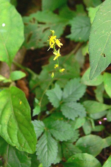 ・・・と、キンミズヒキにしては貧粗な花付きの一群に出逢います。背丈は10〜25センチほどで、葉は根元に付き、小葉は3枚、花は疎らに付いています。