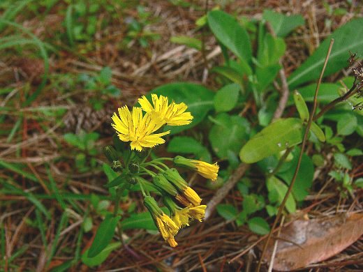 海岸の岩場や礫地に生える多年草で、沖縄のような潮風の影響が強い所では内陸部の山すそまで生えることがある。高さは30センチほどになる。 根出葉はさじ状長楕円形又は線状長楕円形で、長さ5〜15センチ、全縁で鈍頭。 頭花は密散房状に8〜12個つき、10〜11月黄色い花を咲かせる。 島根県、山口県以南に分布する。 〜徒然想〜 ワダンは、ふつう海岸に生える植物です。ホソバノワダンも同様と思っていましたが、沖縄の地では少し内陸に入った草地に生えていました。 さすがに同行者は強者揃い、どんな場所に生えていてもすぐにその名が分かってしまいます。すぐに気づかなかった自分に、まだまだ未熟を感じた一瞬でした。 さすがに沖縄です。もうすぐ正月というこの時期に、陽が燦々と降り注ぐ岩場でリラックス〜でんと腰を下ろして、煌めく波と海を眺めています。足下には、ホソバワダンとモクビャッコウが咲き誇り広がっています。 −同じ科の植物− |