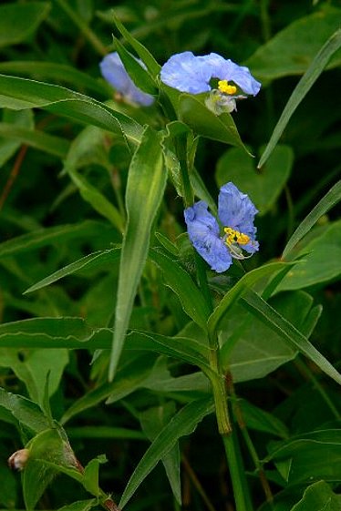 | 草地、荒地、道端などに生える1年草で、高さは20〜50センチ。葉は広披針形で、先が尖りやや白みを帯びる。 花は葉腋から花軸を出し、淡青紫色の花を付ける。苞は少し湾曲した半円形で、先端は細長く尖らない。種子は2〜3個。花期は夏中心に1年中。九州大隈半島以南〜沖縄県、神奈川県に分布する。 〜徒然想〜 アキザキヤツシロランの産地で同好者と思われる人物に出会うと、何と、いつも花の同定に利用しているHPの開設者のKさんでした。何よりもうれしい一日となりました。 その後Kさんとホウライツユクサを見に行くと、とある海辺の傾斜地にこの花が群生していました。 一瞬、北岳でみたミヤマハナシノブを思い出すほど、その花色は清楚で美しい。同時に、本来南方系の花なのに、なぜ遠く離れた神奈川県に生息できるのか、生物の不思議を感じました。 ツユクサとは、花弁の大きさが倍ほどもあり柔らかく、花色が淡青紫色である違いがあります。 −同じ科の植物− |