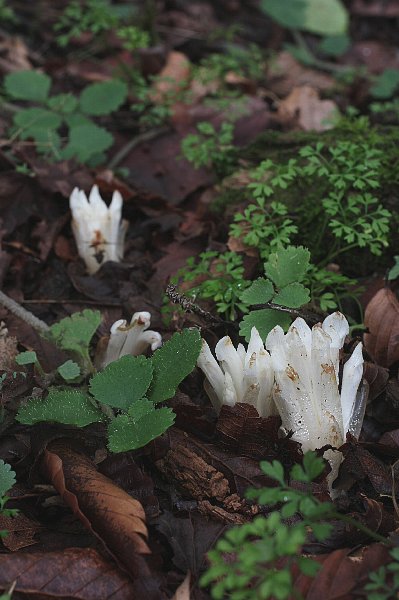山地の湿った林下などに生える寄生の多年草で、高さは5〜10センチ。茎は叢生し、全体が肉質で白色、多数の鱗片葉がある。 花は茎の先に5〜10個つき、白色、のちに黄色っぽくなる。花期は5〜7月。北海道〜九州に分布する。 和名は、千葉県の清澄山で見つけられたことによるが、分布は広い。 〜徒然想〜 高尾山で探しましたが、見つかりませんでした。前の週もこの場所を歩き回り、見つかりませんでした。 そして、・・・ようやく見つけることができたようです。 一見キノコのような、柱状のものが放射状に生えています。図鑑のものとはイメージが違っていて、これがキヨスミウツボと確信が持てなくても、何となくほっとするものがありました。 まだ出始めなのでしょう。図鑑で説明されている花の姿と違っていると思いながらも、撮影を進めると、次第に、これがキヨスミウツボに違いないとの確信に変わっていきました。 −同じ科の植物− |