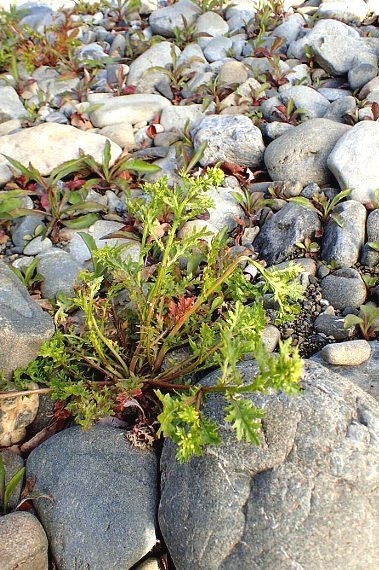 水湿地に多い1年草又は越年草で、高さは10〜40センチ。葉は羽状に深裂し、裂片は長楕円形で鋸歯がある。基部には耳部がある。 花は黄色で短い柄がある。花期は4〜5月。9〜10月。関東以西〜九州に分布する。 〜徒然想〜 渇水期に入り、すっかり水が引いた川は砂泥地が露出しています。砂泥地はキタミソウの生育地なのですが、残念ながら花を付けたキタミソウは見つかりませんでした。 水辺から少し離れたところには、オオメナモミに埋もれるように、背丈10センチほどのこの花が沢山生えていました。 アブラナ科が予測されるものの、名前が分かるまでにずいぶん時間がかかりました。花期は4〜5月とされていますが、秋にも開花するようです。 −同じ科の植物− |