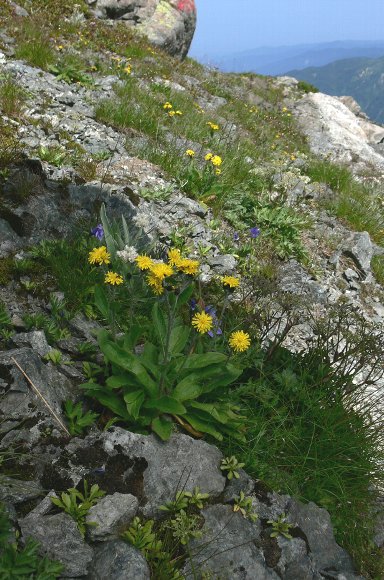 亜高山〜高山帯に生える多年草で、高さは15〜50センチ。茎、葉、総苞に剛毛があり、花茎状の茎頂に黄色い頭花を付ける。 花期は7〜8月。本州中部地方以北に分布する。 〜徒然想〜 これならば、ミヤマコウゾリナと自信を持って言えるでしょう。図鑑と同じ典型的な個体が目の前にあります。 陽射しが強すぎてなかなか撮りにくいのですが、典型種との出逢いで、うれしい撮影になりました。 初心者の私にとっては、典型的な個体から外れると、とたんに名前に迷いが生じます。そのためにお蔵になっている花たちがどれほどいることか。早く、それらが表に出られるよう、精進です。 |