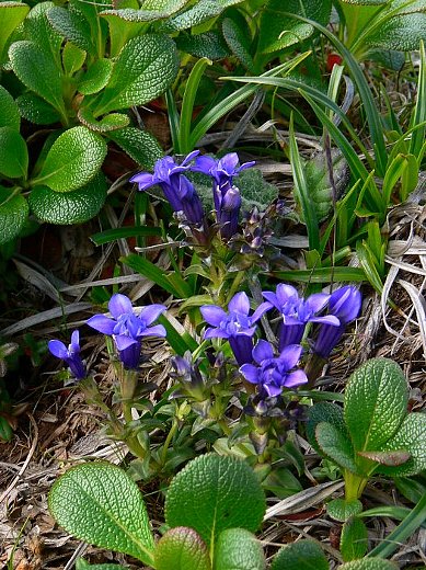 | 高山帯の湿った草地に生える多年草で、高さは5〜12センチ。茎の下部は地を這い、しばしば分枝する。 花冠は紫色で、先は5裂して裂片は平開するが、副片は内側に折れて花喉をふさぐ。萼裂片は反転する。 白花品はシロバナリシリリンドウという。 〜徒然想〜 副片が花喉に覆い被さるのが特徴です。 見事ともいえる青紫色、むしろ深い青といった方がいいほどで、非常に美しい。幻想的でもある。 遠くには雪の残る大雪の山が連なり、私好みの被写体となっている。身震いするほどうれしくなり、夢中で撮りました。 その後、各所で探したが、出逢うことはありませんでした。あの青は夢だったのだろうか。写真を見るたびに、幻想的な気分になります。 2年後の8月、再びこの地を訪れました。今度は多くの株が、ミヤマリンドウと交互に現れ、その見事さに目を奪われました。 −同じ科の植物− |