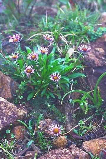 谷川岳、至仏山などの蛇紋岩地に生え、茎の毛が長毛と短毛が混在するのが特徴。また、葉幅が狭く、毛がほとんど生えない特徴もある。 花は暗紫色だが変化がある。白花もある。花期は6〜7月。 〜徒然想〜 森林限界を超えたあたりから、そろそろ花が多くなり、一層歩みが遅くなります。多くは後続者に道を譲るのですが、時には先行者に追いついてしまうことがあります。 そこで始まるふつうの会話〜互いに “どうぞ!”、“どうぞ!” いずれ撮影していると追い越されてしまうのが分かっていても、遠慮なく先に行かせてもらうことにしています。 10人ほどの関西弁のパーティーは極端に遅いグループで、その後になかなか道を譲られない数人が続いています。 それでも、ようやく追い越し、ほっとした所にジョウシュウアズマギクが現れました。撮影していると、賑やかな関西弁が次第に近づいてきます。心落ち着かなく撮影し、先行します。 −同じ科の植物− |