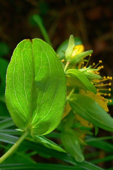 | 亜高山〜高山帯の草地に生える多年草で、高さ10〜30センチ。葉は対生し、卵状楕円形で、先は円頭、基部は茎を抱き、全縁。葉裏には多少明点があり、縁には密に黒点がある。 花は集散状に付き、鮮黄色で5弁、直径は1.5〜2.5センチ。花弁には黒線と黒点がある。雄しべは多数、柱頭は3個。花期は7〜8月。東北南部〜中部地方に分布する。 〜徒然想〜 赤い蕾と黄色い花弁のコントラスト、長くのびた雄しべが好きで、出逢うといつもカメラを向けてしまう。そして、出逢いはいつも亜高山帯の明るい草原〜一層気持ちを明るくしてくれる。 オトギリソウの仲間は、葉、萼片、花弁に腺体を有し、この腺体の色素が赤いと黒く見えるので黒点として現れ、色素が無いと明点として現れる。 シナノオトギリは葉の縁に黒点が並ぶの特徴で、葉の裏からみるとなおこれがよく分かります。葉面に明点があるのも特徴のようですが、よくみえません。 −同じ科の植物− |