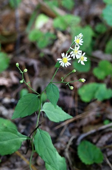 頭花はやや密に付き、舌状花は白色〜時に淡紫色を帯びる。直径1.5〜2センチ。総苞は筒状で長さ4ミリほど、総苞片は鈍頭で微毛がある。花期は9〜11月。本州〜九州に分布する。