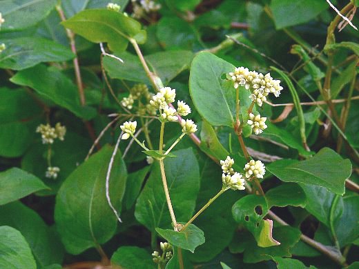 | 暖地の海岸に生える多年草で、つる状又は立ち上がって1メートルほどになる。葉は互生し有柄、無毛で卵形〜卵状長楕円形、先は尖る。 花は頭状に集まり密な総状花序になる。花柄には腺毛があり、花被は5裂し、白色又は淡紅色。花期は5〜11月。千葉県以西に分布する。 〜徒然想〜 砂浜に生える植物を観察しようと、釣りで勝手知ったる砂浜に下ります。11月のこんな時期でも砂浜やその縁に多くの花が咲いています。 釣りや海水浴で通ったときとは全く違った視点で海辺を散歩すると、今まで見えていなかったものが見えてきます。新鮮な気持ちの散歩となりました。 ツルソバは砂浜への下り口にびっしりと群生していました。 −同じ科の植物− |