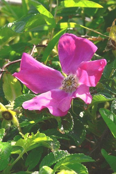 そんなハマナスの花を箱根の植物園で見て、この鮮やかな色ならば、ガイドさんの言うとおりと、原生花園を埋め尽くす赤い花を思い浮かべたものです。