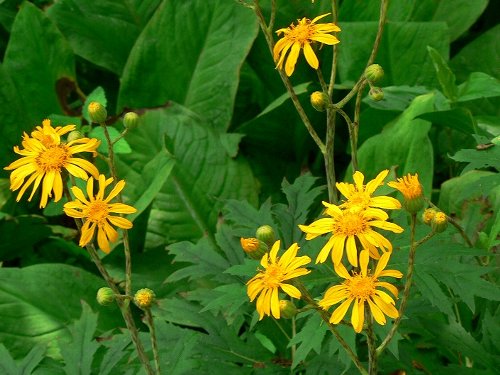参考掲載: 前漢を起こした劉邦(高祖)に仕えた武将に因んだ名だとか。確かに、花は大きく葉も大きい〜無骨な花という印象です。 やや湿った山林に咲くようで、サイトには湿原で出逢った報告が多い。ですので、いずれ自然の姿に出逢うこともあるでしょう。 似た花にマルバダケブキを思い起こすが、こちらはマルバというだけに、無骨の中にも丸みが見える。 そうそう、マルバダケブキも丸葉張良草という別名を持つ〜張良も漢の武将です。 |