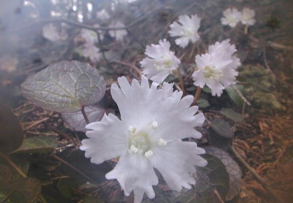 花が白いものがあり、シロバナイワウチワと呼ばれます。
