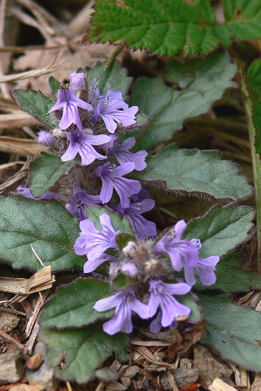 | 山野の日当たりのいい場所などで地に貼り付くように生える多年草で、茎の長さは5〜15センチ。全体に縮れた毛がある。根生葉はロゼット状に広がり、倒披針形、粗い鋸歯がある。 葉腋に長さ1センチほどの濃紫色の唇形花を数個付ける。花期は3〜5月。本州〜九州に分布する。 〜徒然想〜 タチキランソウをアップするにあたって、アップ済みのキランソウの徒然想を覗いてみました。 あまりにも稚拙な文章で、気恥ずかしかったです。 このHPの開設時の325種の一つですが、他にも気恥ずかしい文章が残っているに違いありません。 早く修正しなくては・・・気持ちは焦ります。 タチキランソウの上唇が耳のように大きいのに対し、本種の上唇は短く目立ちません。 花の色が白いものやピンク色のものが見られ、ピンク色のものはモモイロキランソウとと呼ばれます。 キランソウ民間薬として使われたこともあり、生薬名は筋骨草(きんこつそう)といいます。 鎮咳、去淡、解熱、健胃、下痢止めに使用する。虫さされには茎葉をもみつぶして患部に塗る。化膿した切り傷、腫れ物、うるしかぶれにも効果がある。 −同じ科の植物− |