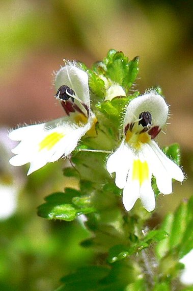 高山の乾いた草地などに生える半寄生の1年草で、高さは3〜15センチ。茎は直立し、曲がった白毛と開出する腺毛がある。葉は小さく、倒卵形か広いへら形で、長さは幅より少し長く、縁に2〜3対の先の鈍い鋸歯がある。
