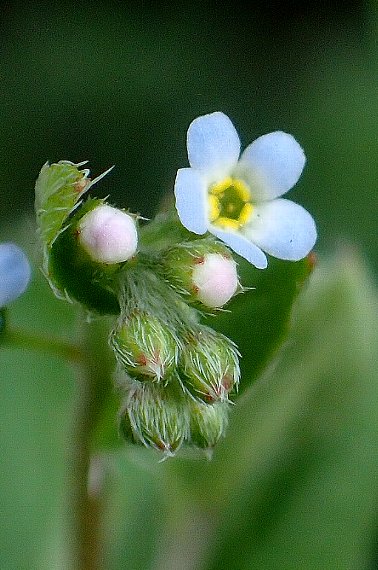 | 山野の道端、畑などに生える2年草で、高さは15〜30センチ。葉は互生し、長楕円形〜卵形で、下部のものは長い柄があるが、上部のものは無柄。 花は茎の先に花序を出して次々に咲き、花冠は淡青紫色で直径2ミリほど。花期は3〜5月。日本全土に分布する。 〜徒然想〜 ムラサキ科の花は、みんな可愛くきれいです。 奥多摩御前山から境橋への下り道は、今日も退屈でした。時折姿を見せる花が何よりの救いです。 キュウリグサは、最後の車道に出る手前で現れました。頼りない姿で、石に寄り添うように咲いていたのですが、何とも可愛く、なごみをいただきました。 今では季節になればどこでも見ることができるのですが、あの時のキュウリグサほど感動ものはありませんでした。 一方で、北海道での群生は、これまた感動です。 さすがに北海道です。 キュウリグサの花序は、咲き始めはくるっと巻いていますが、花が咲き進むと真っ直ぐになっていきます。 −同じ科の植物− |