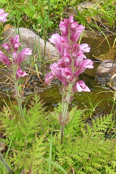 | 低山〜亜高山帯の湿った地に生える多年草で、茎は分枝せず直立し、高さは1メートルほどになる。全体に白毛が多い。葉は根ぎわに対生し、長卵形で、羽状に全裂する。 茎の先に花穂を作り、まばらに淡紅色の花を付ける。花期は8〜9月。石川県以北の日本海側に分布する。 〜徒然想〜 他のシオガマの仲間に比べて大きいからとの理由でオニの名が付いたのなら、お気の毒というしかない。花はタカネシオガマ、ミヤマシオガマと同様に、鮮やかな紫で美しい。 栂池自然園のゴンドラリフトの降り口付近で、高さ60センチほどのこの花が、すくっと立ち上っていました。 まるで、これから栂池自然園に向かう人達を見守る仁王のようでした。・・・やはり、オニは仕方ないか。 −同じ科の植物− |